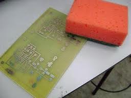 Step 4 : A picture of PCB after photoresis process. Remove a circuit from PCB and you can use again the same laminate for other PCB.